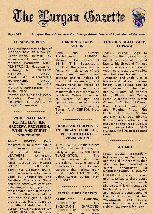 For more information, Birth, Death and Marriage records, photos and histories of Lurgan, please visit the Lurgan Ancestry website: www.lurganancestry.com