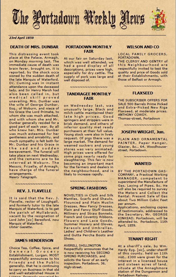 For more information, Birth, Death and Marriage records, photos and histories of Lurgan, please visit the Lurgan Ancestry website: www.lurganancestry.com